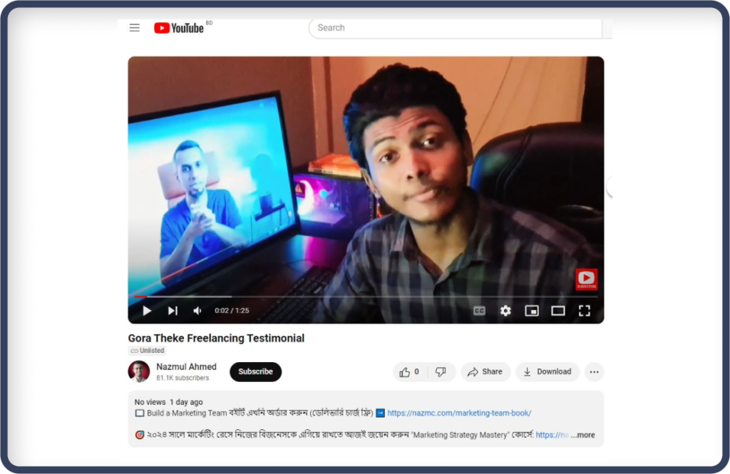 হ্যালো, আমি নাজমুল আহমেদ এবং “গোড়া থেকে ফ্রিল্যান্সিং” কোর্সে মেন্টর হিসাবে আমি থাকছি আপনার সাথে।