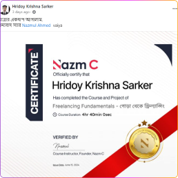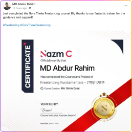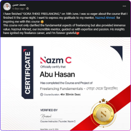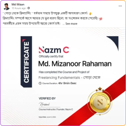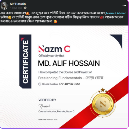 আমার কোর্স কতটা হেল্পফুল তা দেখুন আমার কোর্সে জয়েন করা পার্টিসিপেন্টদের থেকে।