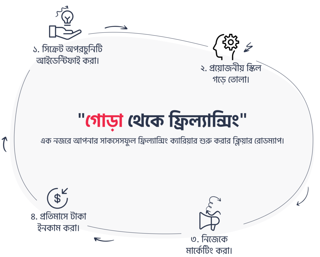 স্টেপ বাই স্টেপ প্রসেসে আপনি কিভাবে গোড়া থেকে ফ্রিল্যান্সিং ক্যারিয়ার শুরু করতে পারবেন তার জন্যে আমরা লঞ্চ করেছি একটা সুপার ইফেক্টিভ কোর্স।
